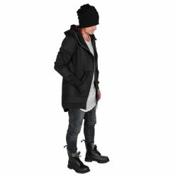 Two-way zipper from the bottom to the top of the hood – see photo.