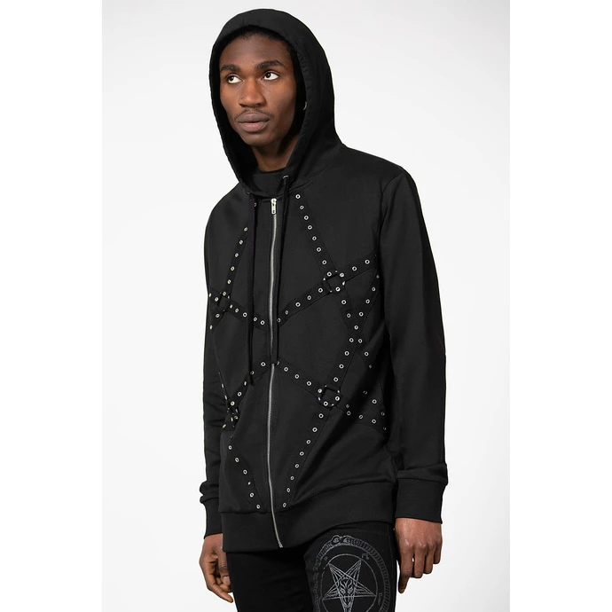 UNISEX (men’s/women’s) sweatshirt decorated with metal rings.