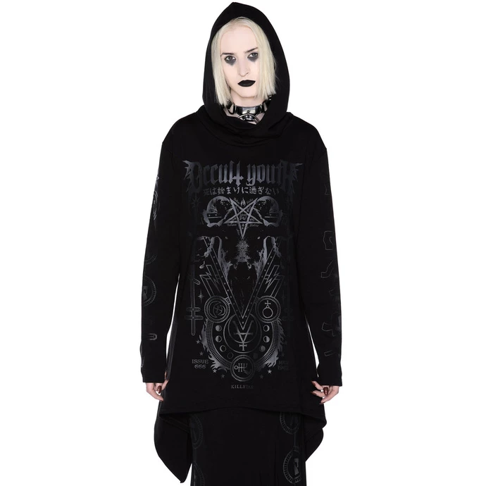 UNISEX (men’s/women’s) hoodie with high-quality print and hood. Color: black. Brand: KILLSTAR. Composition: 44% TR, 36% TC, 17% polyester, 3% elastane. Please note that the dimensions stated in the table below are only approximate and that the actual sizes between different products and styles may vary. Approx. dimensions in centimeters (CIRC. is 2x width)
